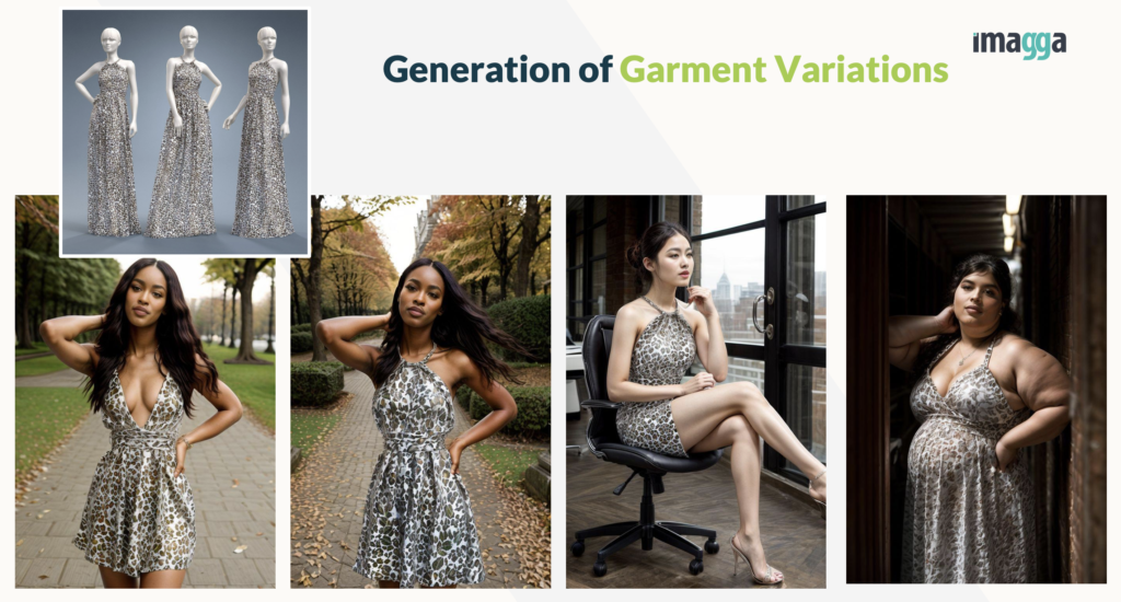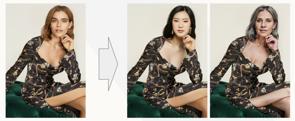 Achieving photorealism in Generative AI Fashion imagery requires accurate simulation of environmental factors, such as lighting and background elements. Whether it’s ambient or direct lighting, these aspects play a crucial role in how clothing appears on virtual models. Properly replicating light sources ensures the images feel natural and realistic. Similarly, background objects need to be rendered in harmony with the scene to avoid distractions and enhance the overall authenticity of the visual.